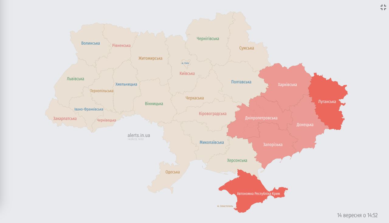 14.54 Воздушные силы предупреждают об угрозе применения баллистического оружия по областям, где объявлена тревога.