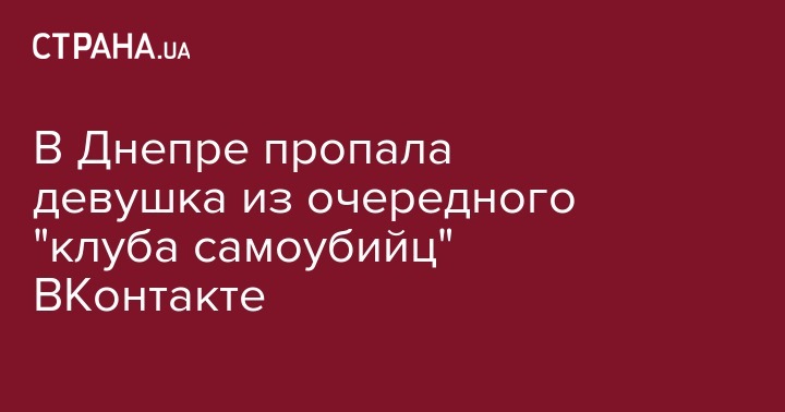 В Днепре пропала девушка из очередного "клуба самоубийц" ВКонтакте