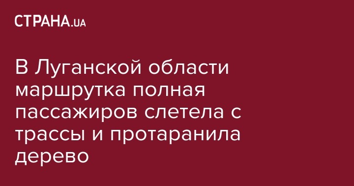В пятницу, 9 декабря в Луганской области произошло ДТП. Маршрутный микроавтобус Renault Master врезался в дерево. В результате происшествия пострадал водитель и 9 пассажиров маршрутки, передает пресс-служба областного управления ГСЧС.
