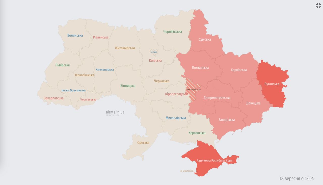 14.57 Северо-восток Украины охватила воздушная тревога.