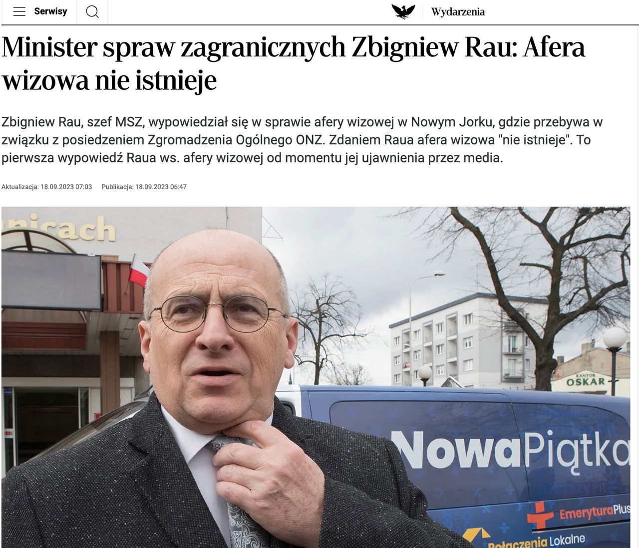 Збигнев Рау заявил, что "не чувствует себя соучастником" визового скандала и не рассматривает возможность отставки.