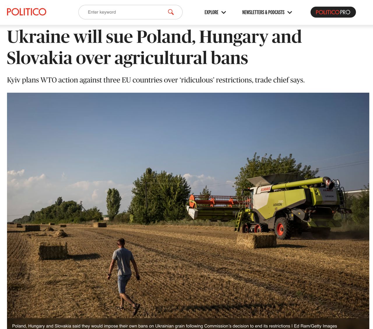 Качка заявил, что, говоря о защите своих фермеров, Варшава лукавит, поскольку "польский запрет не поможет фермерам, он никак не повлияет на цены, потому что цены формируются глобально".