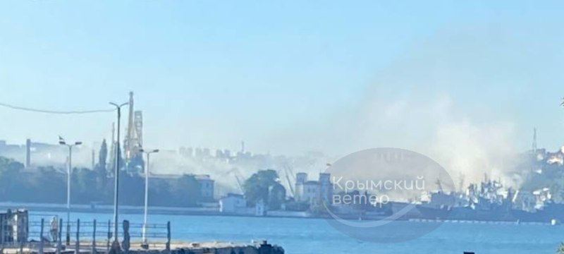 10:08 Дым в Крыму виден не только в районе Керченского моста, но и в бухте и центре Севастополя.