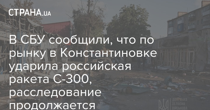 Служба безопасности Украины 6 сентября начала проверку ракетного удара по рынку Константиновки Донецкой области. Следствие идет по статье "Нарушения законов и обычаев войны".