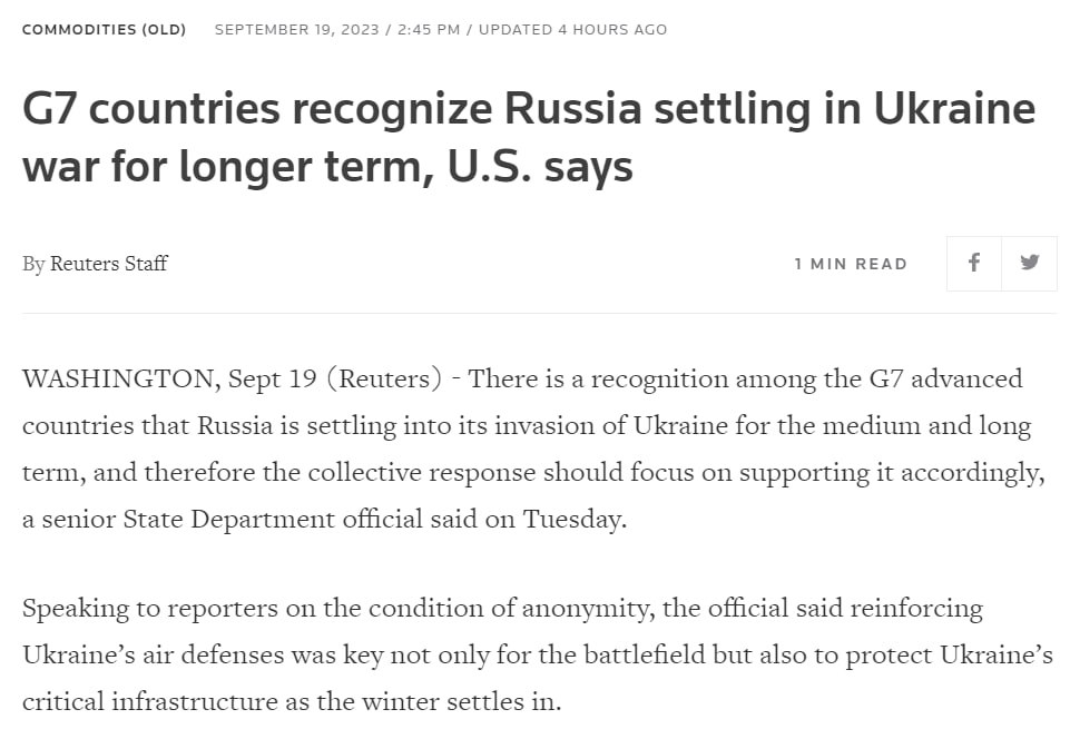 Страны G7 признают, что Россия перевела войну в Украине в долгосрочную перспективу.