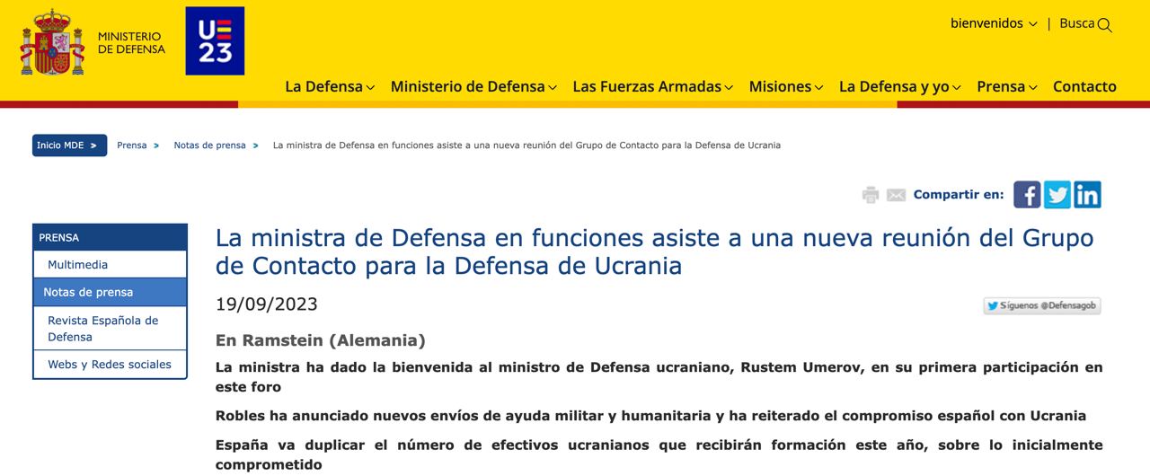 Сегодня, 20 сентября, Испания объявила о новом пакете военной помощи Украине.