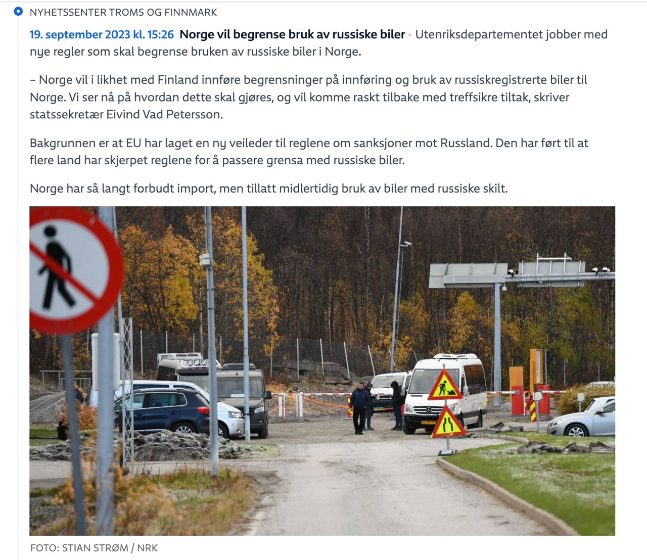 Отметим, что Норвегия оставалась последней страной шенгенской зоны, граничащей с РФ, которая ещё не ввела запрет на въезд автомобилей с российской регистрацией.