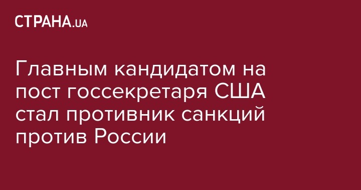 Главным кандидатом на пост госсекретаря США стал противник санкций против России