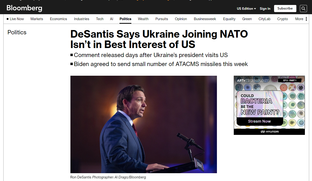 Один из кандидатов в президенты США Рон Десантис (Республиканская партия) выступил против принятия Украины в НАТО. Он заявил, что такой шаг не принесет пользы безопасности Соединенных Штатов.
