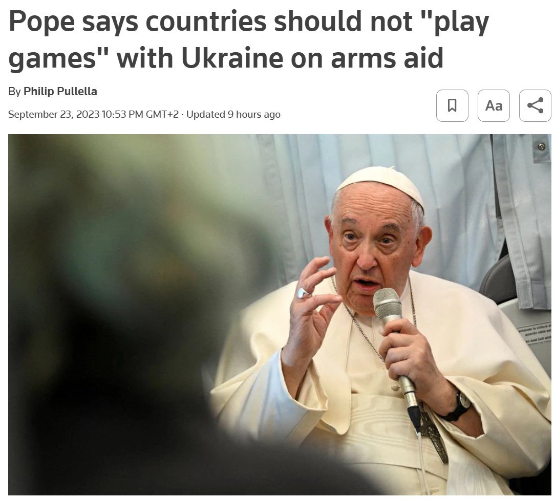 Папа Римский заявил, что война в Украине связана с интересами оружейного бизнеса