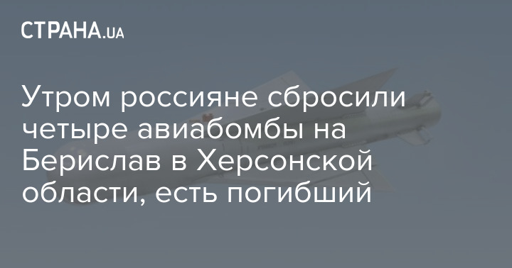 Утром россияне сбросили четыре авиабомбы на Берислав в Херсонской области, есть погибший
