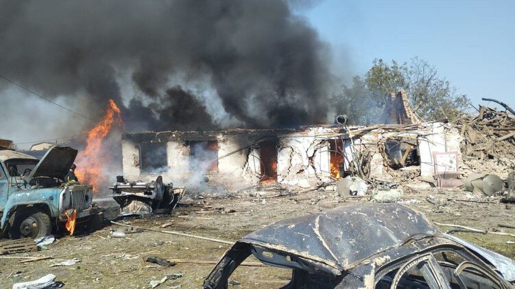 Появились фото последствий авиаудара по ЖЭКу в Бериславе Херсонской области 25 сентября.