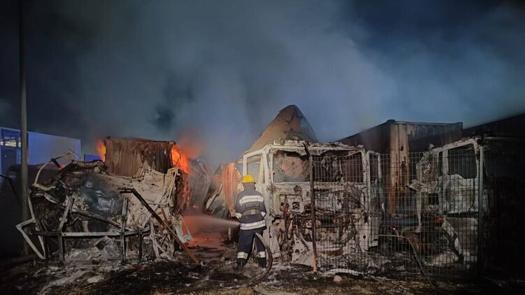 Повреждено здание пункта пропуска, складские помещения, около 30 грузовиков, шесть фур загорелись. Пожарные ликвидировали пожары.