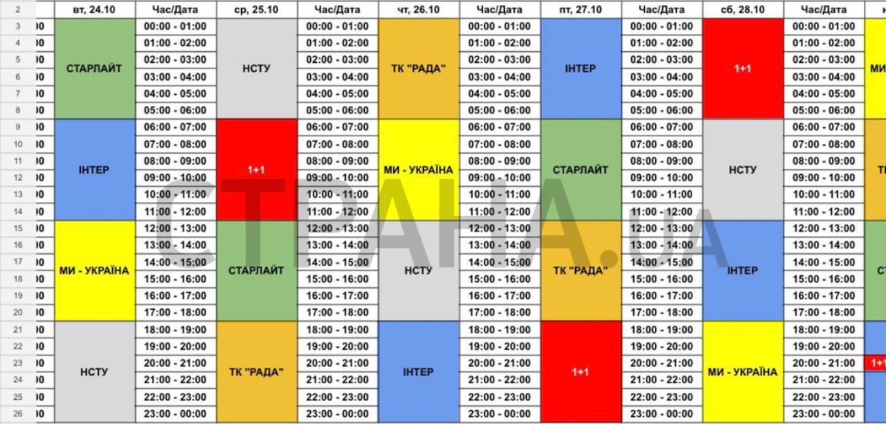 В распоряжении "Страны" оказались квоты каналов в рамках телемарафона на конец сентября-начало октября. Согласно таблицам, пока сокращения эфира у "1+1" нет.