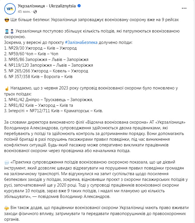 Компания усиливает безопасность на поездах. Фото: facebook.com/Ukrzaliznytsia