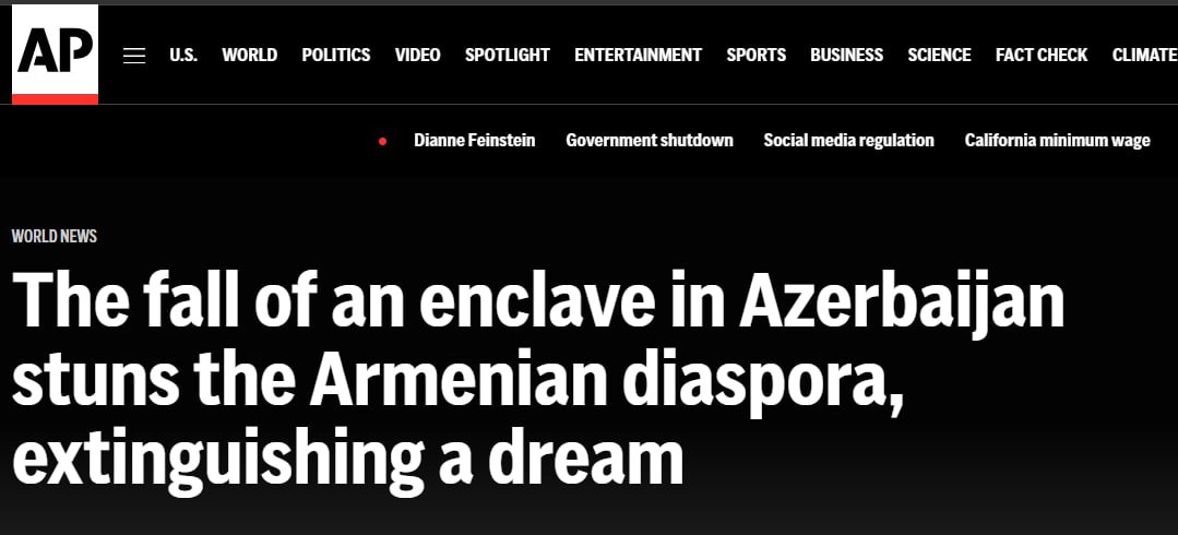 Агентство Associated Press опубликовало реакцию армянской диаспоры на прекращение существования непризнанной республики Нагорного Карабаха и массового исхода оттуда армян.
