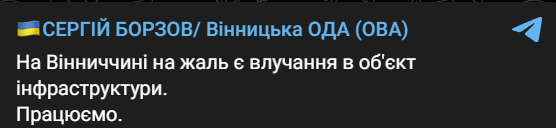 "В Винницкой области, к сожалению, попадание в объект инфраструктуры", - написал он.