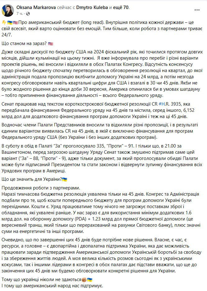 Сегодня мы сообщали, что президент США Джо Байден подписал закон о продлении финансирования правительства США на 45 дней, в который не входит помощь Украине.