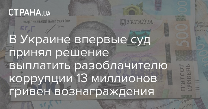 Также впервые судом принято решение о выплате вознаграждения разоблачителю, которое составит 13 299 950 гривен.