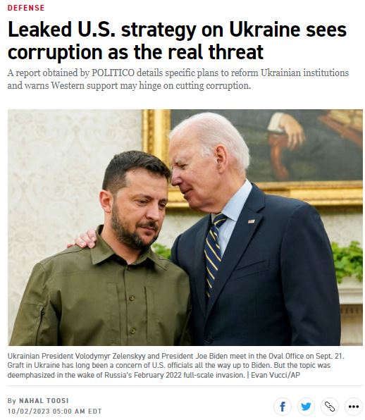"В нем подчеркивается, что коррупция может привести к тому, что западные союзники откажутся от помощи Украине в борьбе против вторжения России и что Киев не может откладывать усилия по борьбе с коррупцией. Существование коррупции на высшем уровне может подорвать доверие украинской общественности и иностранных лидеров к правительству военного времени", - пишет Politico
