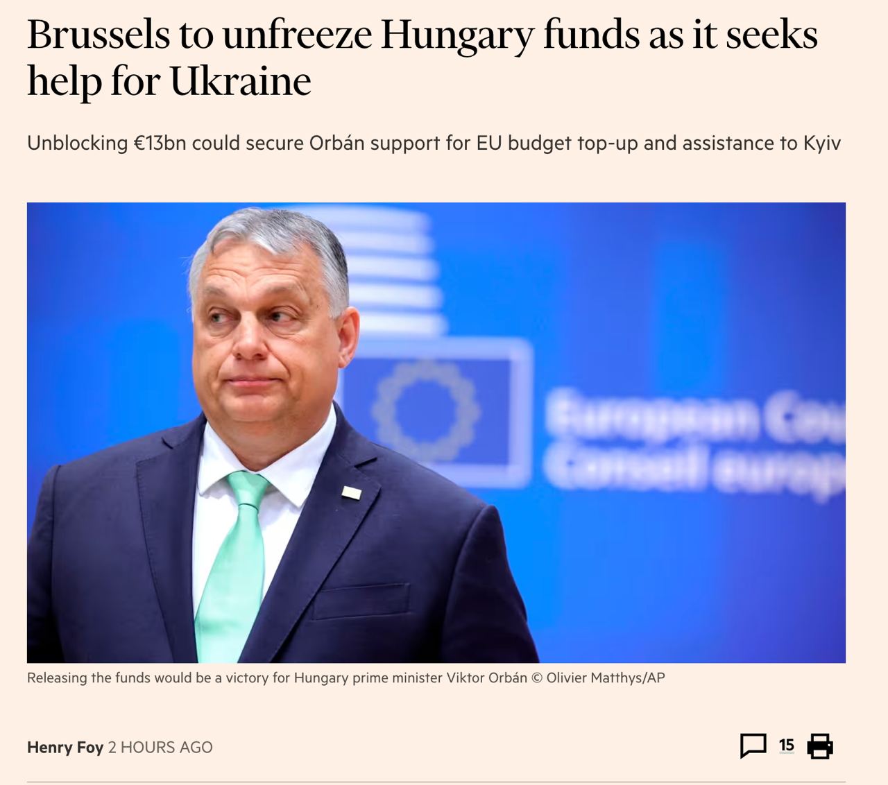 В ЕС готовы разморозить 13 миллиардов евро для Венгрии ради поддержки в вопросе помощи Украине - FT