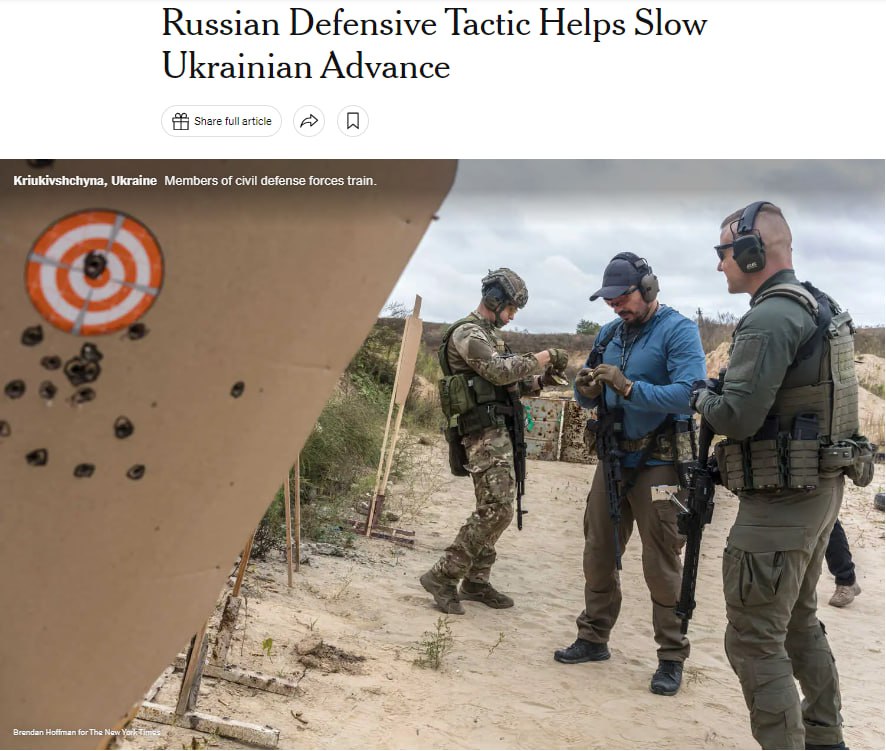 Украинские военные и официальные лица в числе других факторов также называют обширные минные поля и укрепления. Кроме того, прогресс тормозят и задержки с поставками истребителей и дальнобойного оружия.
