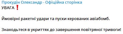 08.25 В Херсонской области предупреждают о вероятном пуске ракет и управляемых авиабомб.