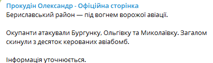 Оккупанты атаковали Бургунку, Ольговку и Николаевку. В общей сложности сбросили с десяток управляемых авиабомб.