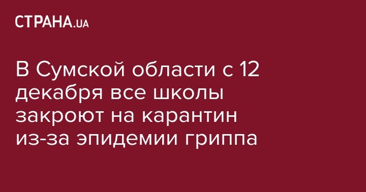 C понедельника, 12 декабря во всех школах Сумской области объявлен карантин. Об этом сообщает пресс-служба Сумской ОГА.