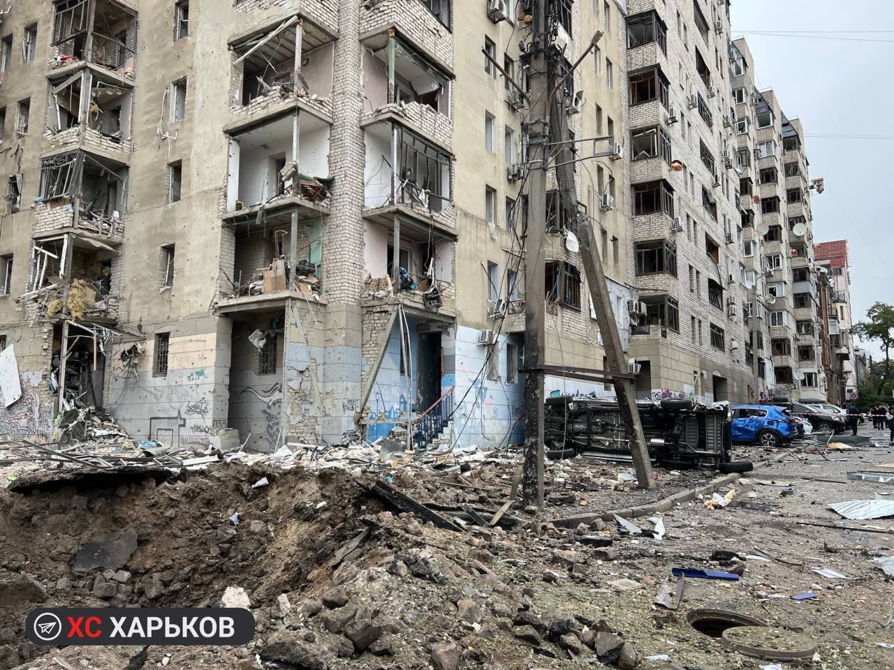 09.05 Видео последствий прилета в Харькове. Повреждены несколько многоэтажек.