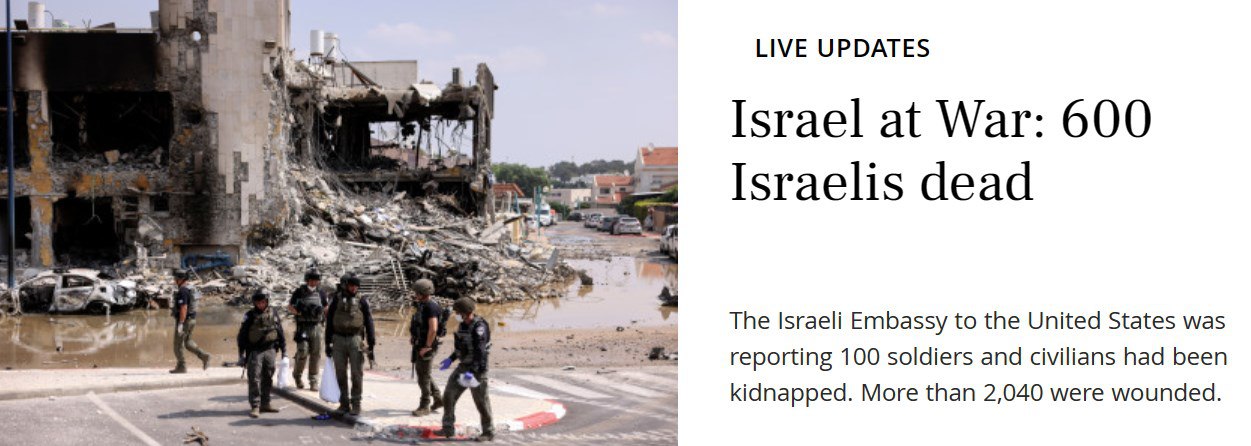 Армия Израиля подтвердила потерю контроля над семи общинами вблизи сектора Газа. 8 октября премьер-министр Израиля Нетаньяху заявил об уничтожении большей части боевиков ХАМАС, которые проникли на территорию Израиля, и о завершении первой фазы операции "Железные мечи". Дальше, по словам Нетаньяху, начнется наступление Израиля и "долгая война".