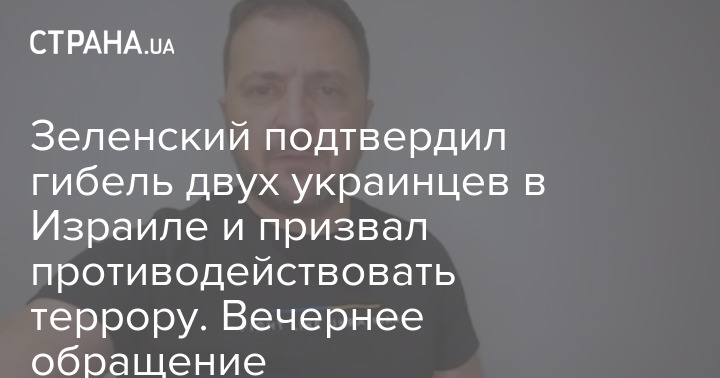Зеленский подтвердил гибель двух украинцев в Израиле и призвал противодействовать террору. Вечернее обращение