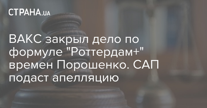 ВАКС закрыл дело по формуле "Роттердам+" времен Порошенко. САП подаст апелляцию