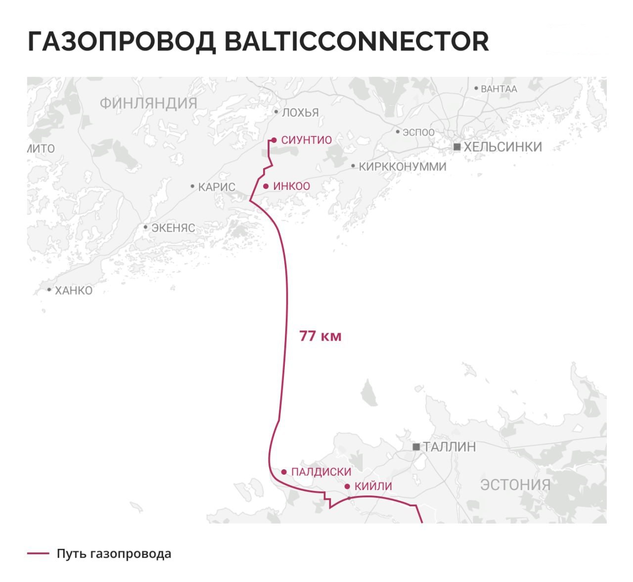 Газопровод Balticconnector соединяет газотранспортные сети Финляндии и Эстонии. Его построили и запустили в 2019 году, чтобы создать единый газовый рынок в регионе и дать Финляндии доступ к латвийским хранилищам природного газа.