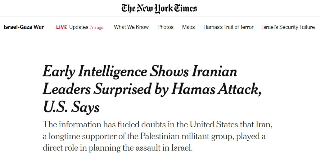 США получили разведданные о том, что руководство Ирана было удивлено атакой ХАМАС на Израиль, что ставит под сомнения слухи о причастности Ирана.