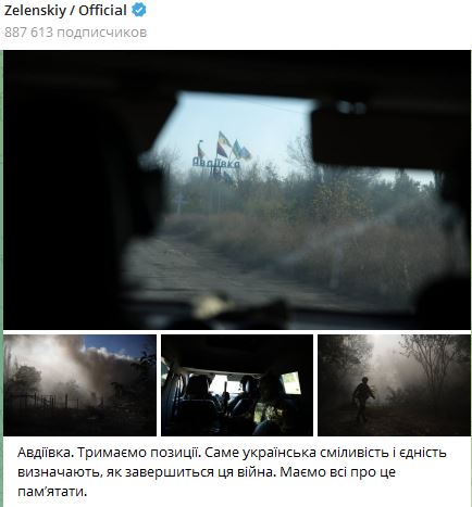 "Авдеевка. Держим позиции. Именно украинская смелость и единство определяют, как завершится война. Должны все об этом помнить", - написал президент.