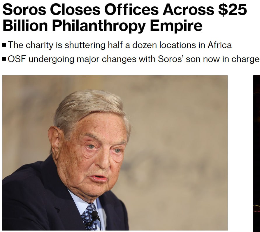 По данным агентства, международная сеть фондов стоимостью 25 миллиардов долларов, основанная Соросом, закрывает офисы по всему миру, готовясь к сокращению более 40% персонала.