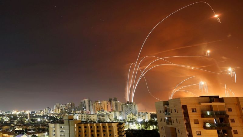 Ответом на этот штурм стали полторы тысячи ракет, которые ХАМАС и его союзник "Исламский джихад" запустили из сектора Газа по Израилю. Израиль ответил авиаударами по Газе.
