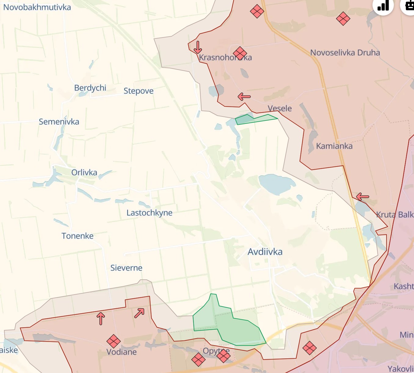 Российские паблики заявляют, что их войска сначала продвинулись у Северного к югу от Авдеевки, но потом ВСУ контратаковали и часть позиций отбили. У Степного к северу увеличилась "серая зона".