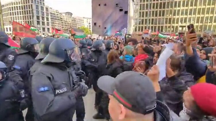 В Берлине на Потсдамской площади вчера прошла массовая акция противников Израиля. На митинг пришло около тысячи человек.