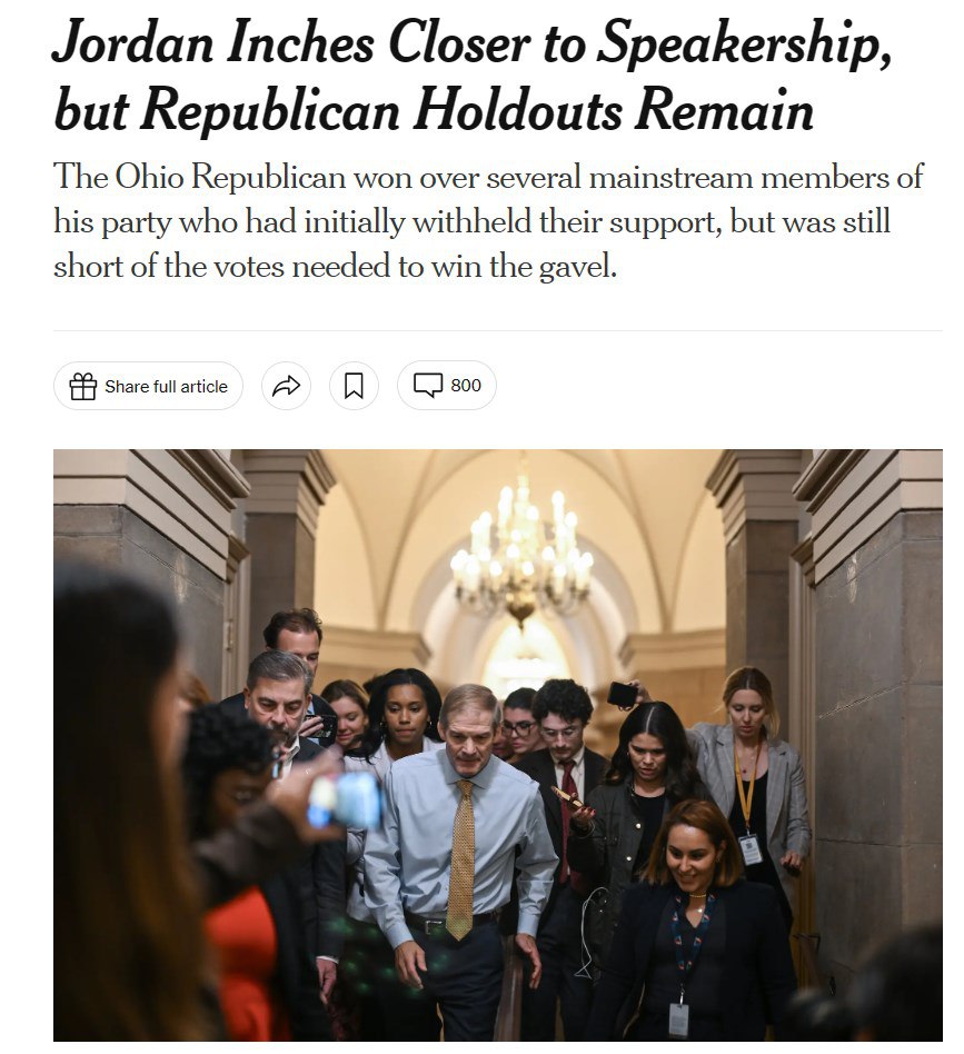 Кандидат в спикеры Конгресса Джим Джордан, которого считают близким к экс-президенту США Дональду Трампу, увеличил свои шансы на избрание.