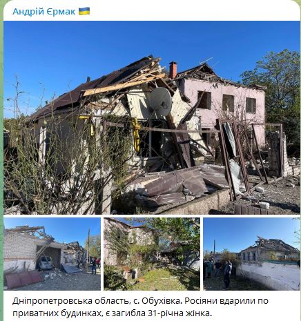 В пгт Обуховка в пригороде Днепра в результате утреннего ракетного удара РФ погибла 31-летняя женщина.