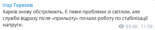 Об этом сообщает мэр Харькова Игорь Терехов.