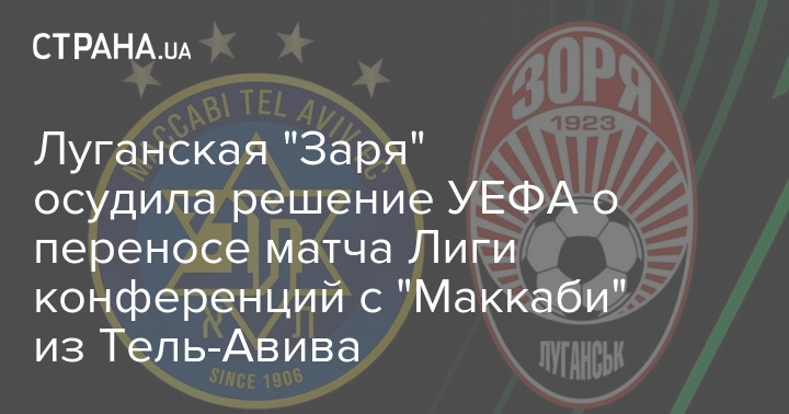 Союз европейских футбольных ассоциаций (УЕФА) перенес матч Лиги конференций с участием украинской "Зари" против "Маккаби" из Тель-Авива, который должен был состояться в Израиле 26 октября. Украинский клуб назвал такое решение "неприемлемым".