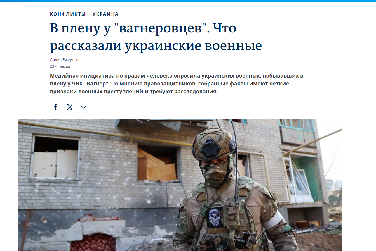 "С сентября 2022 по май 2023 года есть свидетельства, что группа "Вагнер" брала украинских военнослужащих в плен для дальнейших обменов. Они сами вели учет пленных, составляли списки и передавали их для обмена", - рассказала представительница Медийной инициативы по правам человека Татьяна Катриченко в разговоре с DW. По словам правозащитницы, военные свидетельствуют, что у "вагнеровцев" был запрос только на определенное количество пленных: "Других они жестоко и показательно убивали".