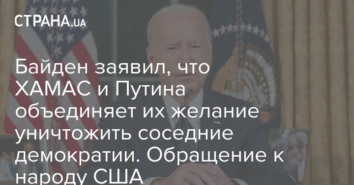 Байден заявил, что ХАМАС и Путина объединяет их желание уничтожить соседние демократии. Обращение к народу США