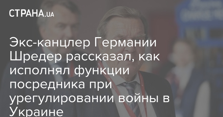 Экс-канцлер Германии Шредер рассказал, как исполнял функции посредника при урегулировании войны в Украине