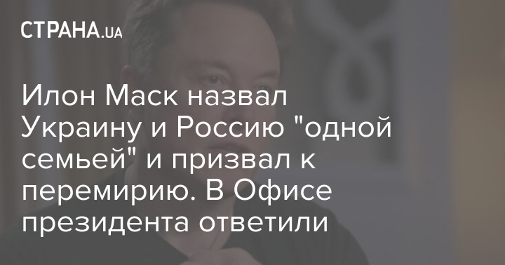 Илон Маск назвал Украину и Россию "одной семьей" и призвал к перемирию. В Офисе президента ответили