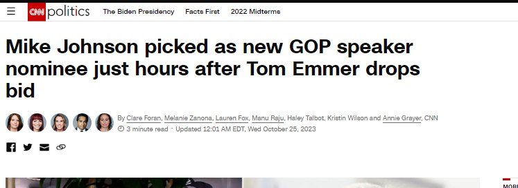 После самоотвода очередной кандидатуры на пост спикера Конгресса США - Тома Эммера - республиканцы выдвинули еще одного конгрессмена - Майка Джонсона.