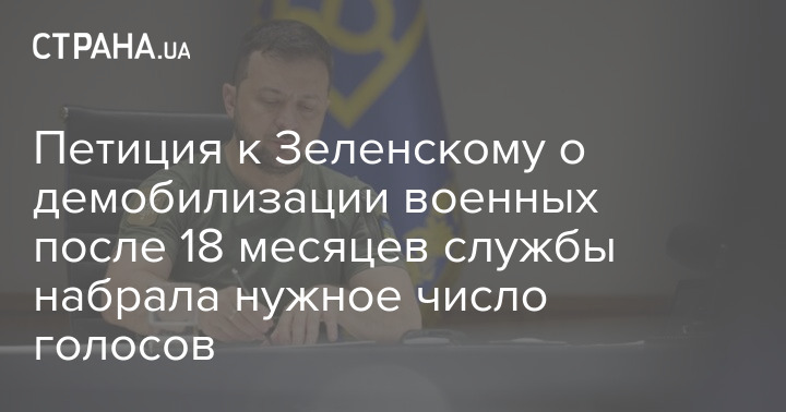 Петиция к президенту Украины Владимиру Зеленскому о демобилизации военных после 18 месяцев службы набрала более 25 тысяч голосов.